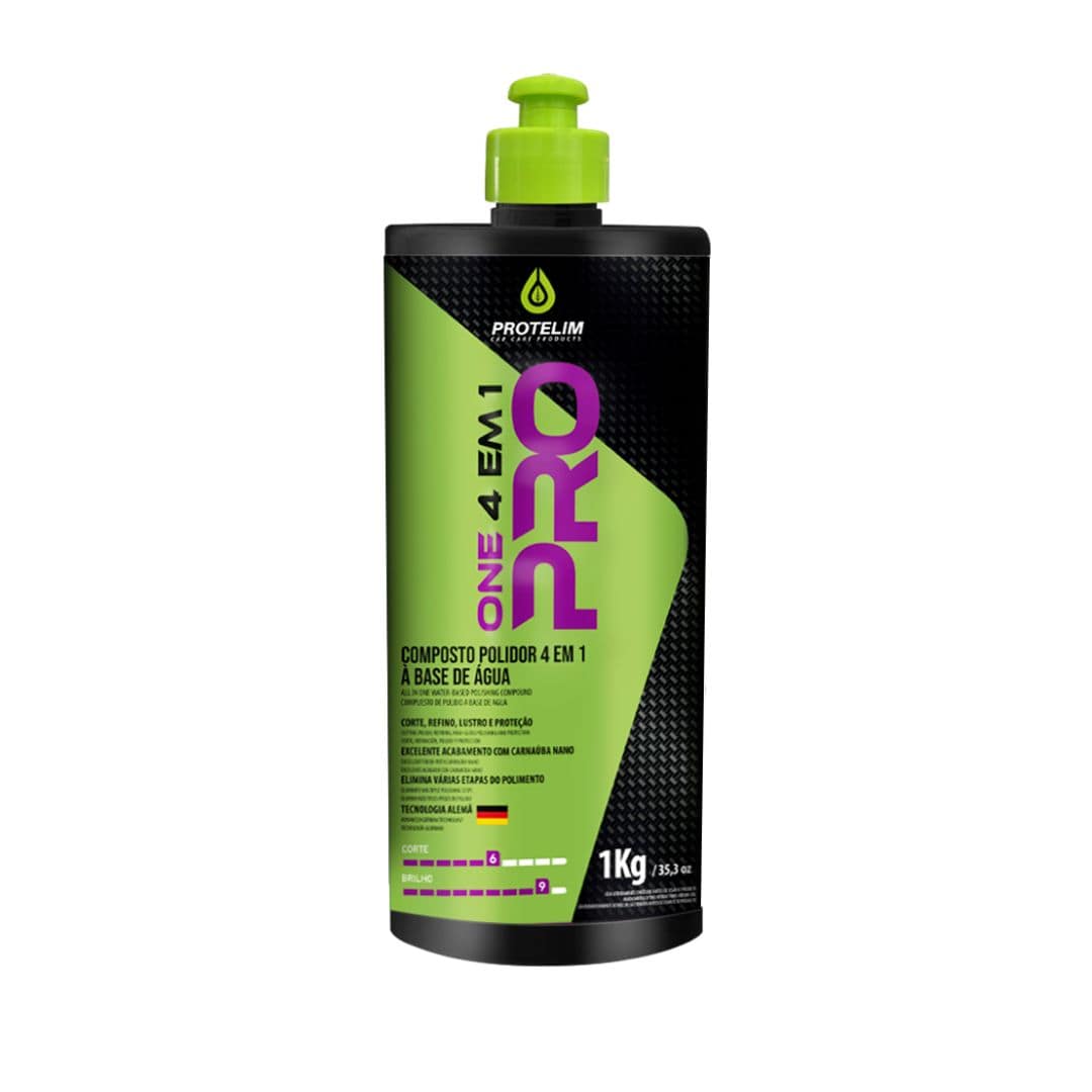 O ONE PRO 4 em 1 – Composto Polidor é a solução completa para todas as etapas do polimento automotivo: corte, refino, lustro e proteção. Desenvolvido com Tecnologia Alemã de última geração, sua fórmula à base de água contém micropartículas abrasivas que oferecem corte rápido e limpo, baixo resíduo de pó e acabamento perfeito. Enriquecido com Carnaúba Nano, proporciona proteção intensa por até 40 dias, unindo brilho profundo e resistência. Substitui múltiplos produtos, reduzindo tempo e custo, sem abrir mão da qualidade profissional. Ideal para detailers e oficinas que buscam eficiência, praticidade e excelência em cada polimento.