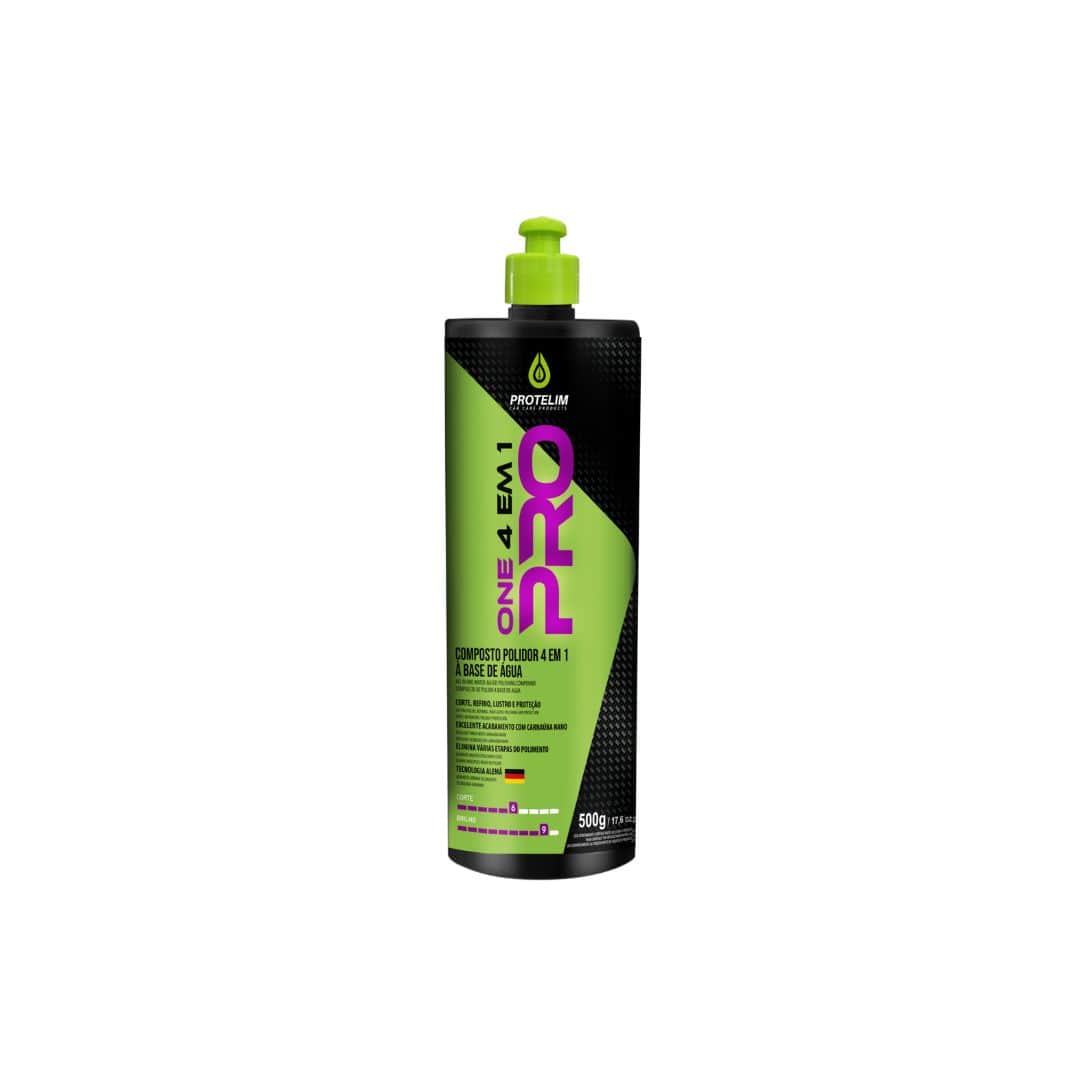 O ONE PRO 4 em 1 – Composto Polidor é a solução completa para todas as etapas do polimento automotivo: corte, refino, lustro e proteção. Desenvolvido com Tecnologia Alemã de última geração, sua fórmula à base de água contém micropartículas abrasivas que oferecem corte rápido e limpo, baixo resíduo de pó e acabamento perfeito. Enriquecido com Carnaúba Nano, proporciona proteção intensa por até 40 dias, unindo brilho profundo e resistência. Substitui múltiplos produtos, reduzindo tempo e custo, sem abrir mão da qualidade profissional. Ideal para detailers e oficinas que buscam eficiência, praticidade e excelência em cada polimento.